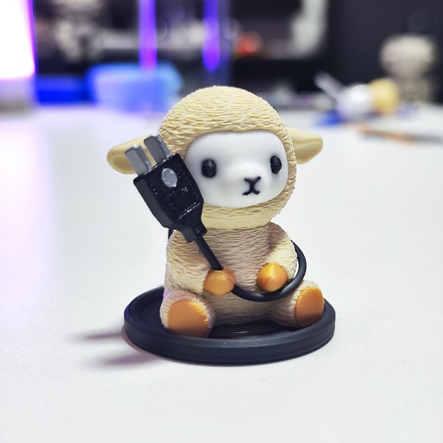 「充電器風ラムくんスタンド」単品です 裏側にケーブルを収納できます ✦スタンドに乗せることでラムくんを充電できるとかできないとか(できない) ➡スタンド裏側にケーブルを収納&長さ調整可 ➡電柱とのセットもあります 材質:PLA(多色造形3Dプリント) ※ご購入前にご確認ください※ ・カラバリやデザインが変更、又は追加になる場合があります ・本作品は 3Dプリンターを用いて一点ずつ出力行った商品で3Dプリンター特有の積層や糸引き、造形ムラ、個体差がございます ご理解の上ご購入をお願い致します